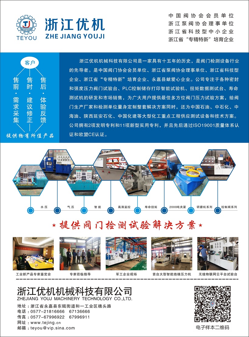 浙江優(yōu)機機械科技有限公司憑借研發(fā)投產(chǎn)的智能集成密封液壓機,成功入榜浙江省先進制造業(yè)首臺套企業(yè)名單,浙江優(yōu)機機械科技有限公司多個產(chǎn)品通過國家閥門(浙江)檢測中心檢測,相關(guān)技術(shù)經(jīng)浙江省省級工業(yè)新產(chǎn)品新技術(shù)鑒定,擁有2項發(fā)明專利和11項新型實用專利,是浙江省泵閥協(xié)會理事單位、浙江省“專精特新”培育企業(yè)、浙江省專利示范企業(yè)、浙江省科技創(chuàng)新型企業(yè)、溫州市科技創(chuàng)新企業(yè)、永嘉縣百星企業(yè)、永嘉縣愛心企業(yè)、中國石油準入供應(yīng)單位、中國寶豐能源準入供應(yīng)單位、山東核電設(shè)備有限公司合格供應(yīng)商。