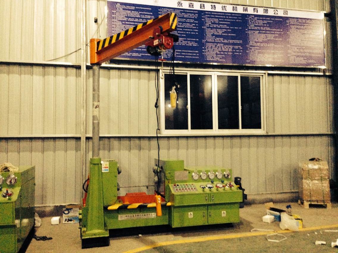 三、接通電源,按油泵啟動按鈕,檢查電機(jī)轉(zhuǎn)動方向,是否正確(順時(shí)針方向)進(jìn)行5—1 O分鐘空載運(yùn)轉(zhuǎn)后,調(diào)節(jié)油泵壓力在5 0MPa進(jìn)行試機(jī),各種動作,檢查各管路有無泄漏,發(fā)現(xiàn)不良現(xiàn)象,應(yīng)立即停機(jī)排除。