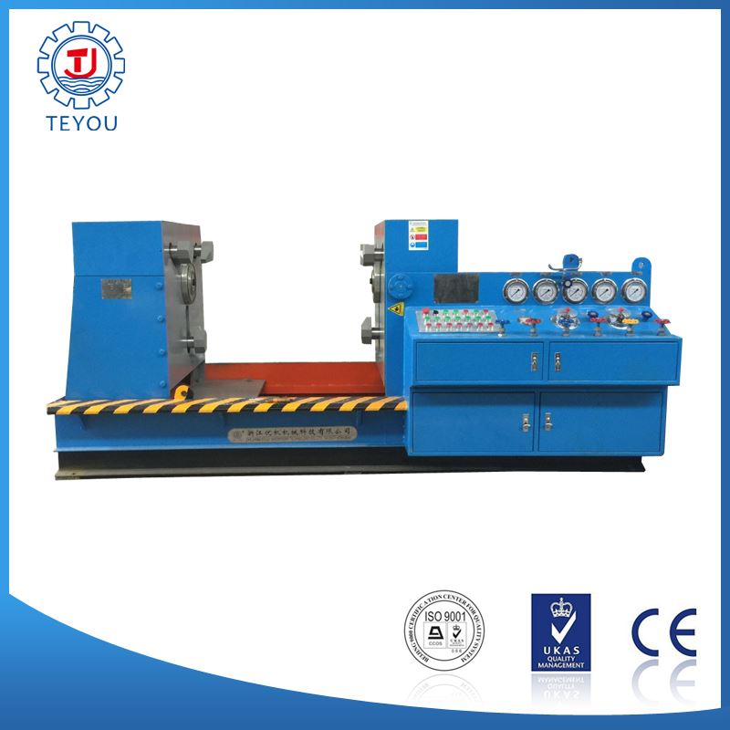 本機(jī)集機(jī)電、液壓、試壓、液體介質(zhì)貯存循環(huán)使用于一體,具有功能完善、性能穩(wěn)定、自動化程度高等特點(diǎn)。廣泛用于公稱通徑DNl 5-1000mm的直通式法蘭及螺紋連接各類高、中、低壓閥門的強(qiáng)度、密封和泄漏量等各項(xiàng)性能測試。測試介質(zhì):水、氣、油。最高密封試驗(yàn)壓力 32.0MPa,強(qiáng)度48 0MPa。