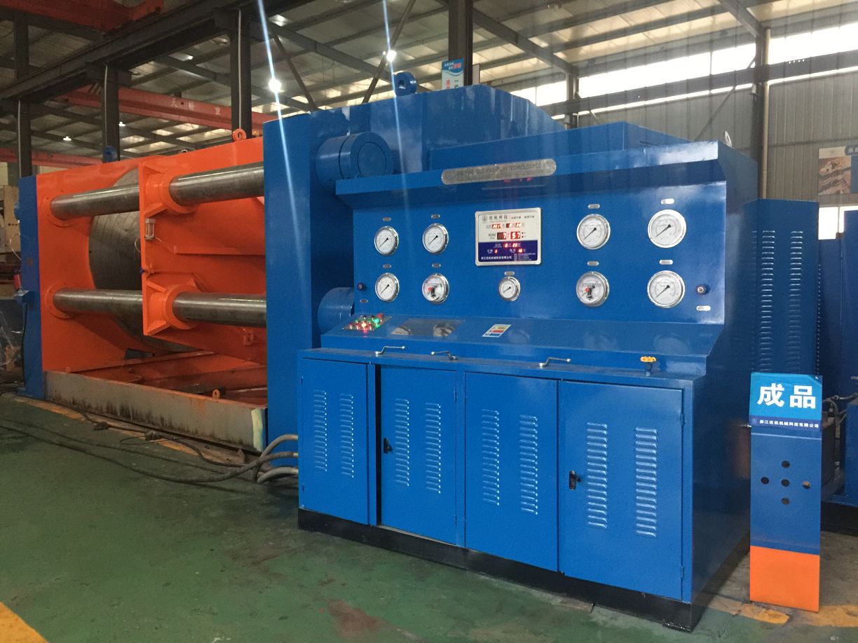 JWT-1200大口徑全焊接球閥試驗(yàn)臺(tái)是頂壓式液壓試驗(yàn)臺(tái)是我公司吸取 了國(guó)內(nèi)外同類產(chǎn)品技術(shù)精華,自主研發(fā)的新一代頂壓式液壓閥門(mén)測(cè)試臺(tái)并擁有國(guó)家技術(shù)專利知識(shí)產(chǎn)權(quán),專利號(hào)ZL2016 1 0240324.1,解決了大型全焊接球閥壓力試驗(yàn)困難、原始試壓不規(guī)范和測(cè)試過(guò)程的安全隱患問(wèn)題。它具有結(jié)構(gòu)緊湊,功能完善,性能穩(wěn)定,操作方便等特點(diǎn)。液壓系統(tǒng)采用了卸荷保 壓功能,在連續(xù)開(kāi)機(jī) 50 小時(shí)條件下,液壓油溫升低于 35℃,節(jié)省了測(cè)試過(guò)程的 能源消耗并提高了設(shè)備使用壽命,是其它同類產(chǎn)品所無(wú)法比擬的。JWT型大口徑全焊接閥門(mén)測(cè)試臺(tái)可以廣泛適用于閥門(mén)生產(chǎn)廠家、全焊接球閥用戶熱力公司、城網(wǎng)管道工程公司、天然氣管道工程公司等大口徑焊接式法蘭式閥門(mén)的殼體強(qiáng)度和密封性能試驗(yàn),試 驗(yàn)壓力介質(zhì)為水、氣、油均可。試驗(yàn)的方式完全符合 GB/T13927-92《通用閥門(mén) 壓力試驗(yàn)》和 JB/T9092-1999《閥門(mén)的檢測(cè)與試驗(yàn)》以及 API 598 和 API 6D 的標(biāo)準(zhǔn) 規(guī)范要求。